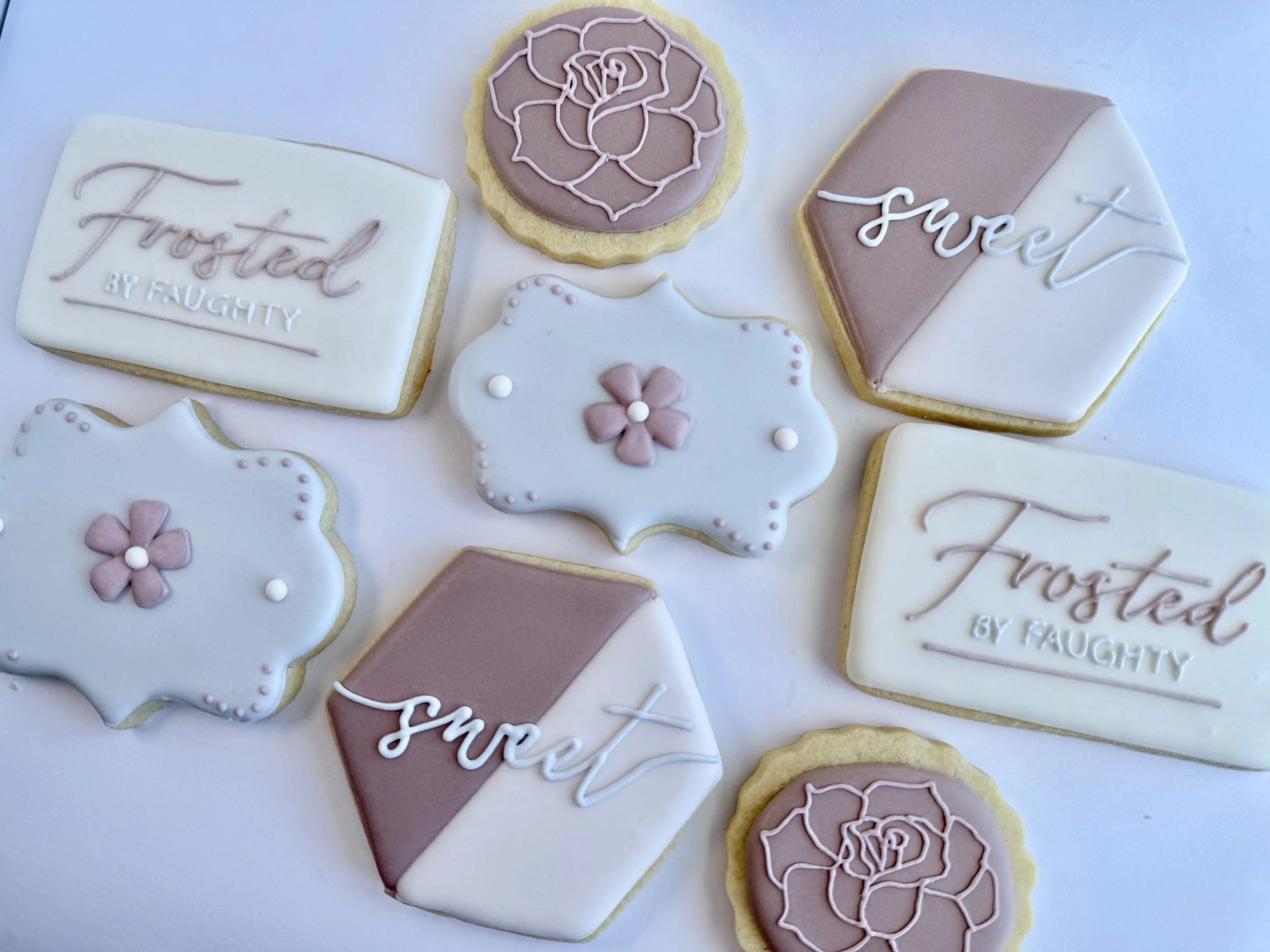 My cookies are almond-flavored sugar cookies made from a signature, home-baked recipe and topped with royal icing. They’re soft, full of flavor, and thoughtfully crafted to taste just as good as they look.